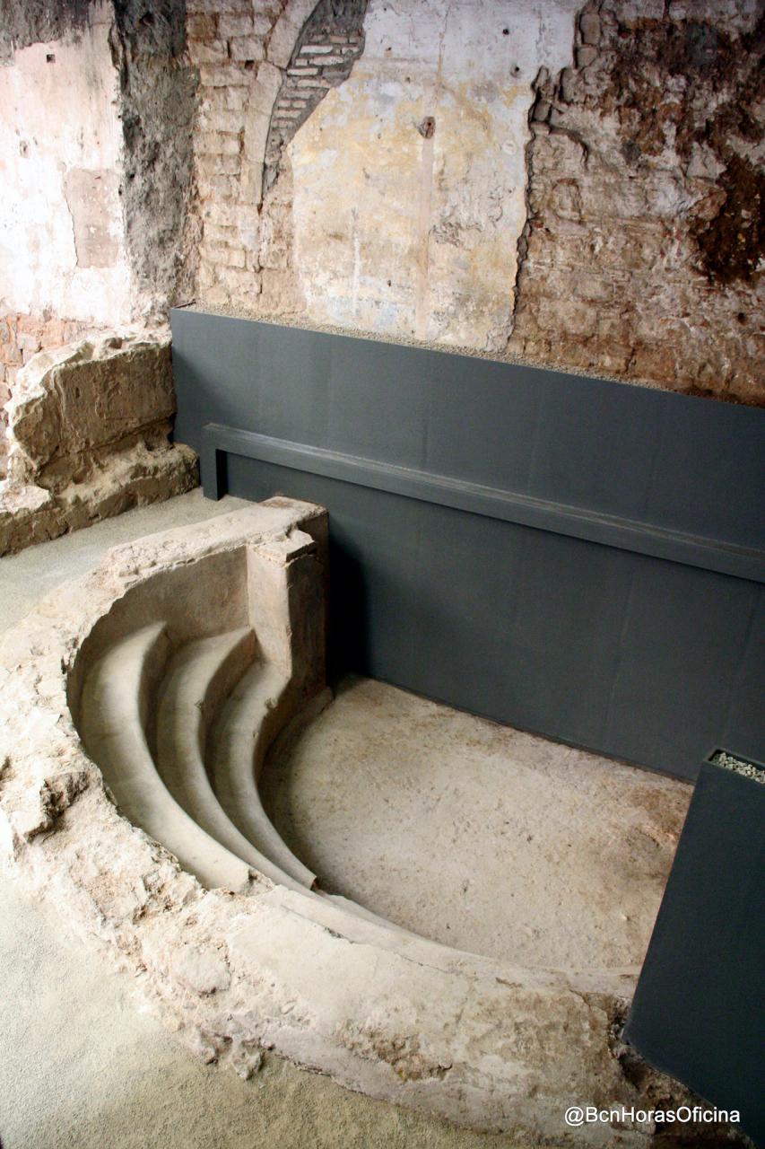 Tan sólo unos 150 metros separaban la muralla de Barcino del mar. Fuera de ésta y a cada lado de la puerta de entrada a la colonia, se construyeron entre mediados del siglo I y principios del siglo II d. de C. dos conjuntos termales portuarios de carácter público, uno para hombres y otro para mujeres. Dada su cercanía al mar es posible que alguna de sus piscinas fuera de agua salada. Al construirse la segunda muralla de la ciudad, en el s.IV, entraron en desuso.